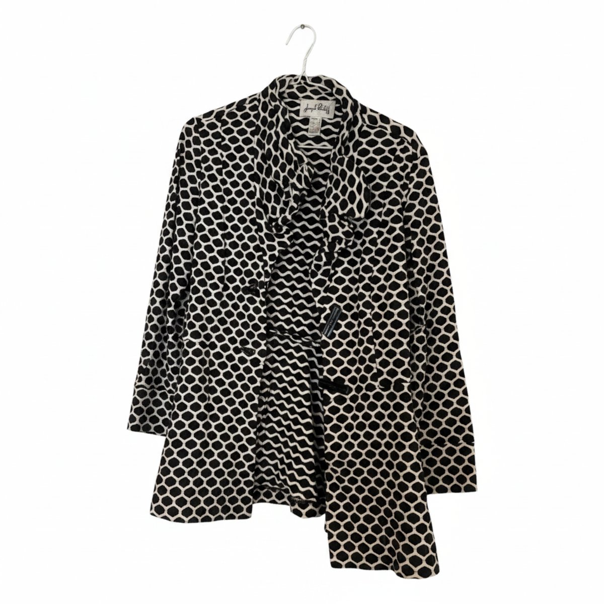 When the winds pick up across the open plains, layering becomes an art form. The Joseph Ribkoff Geometric Print Ruffle-Front Blazer is our absolute hero piece for the season. This isn't your standard, stiff office blazer; it is a masterclass in movement and structure.
