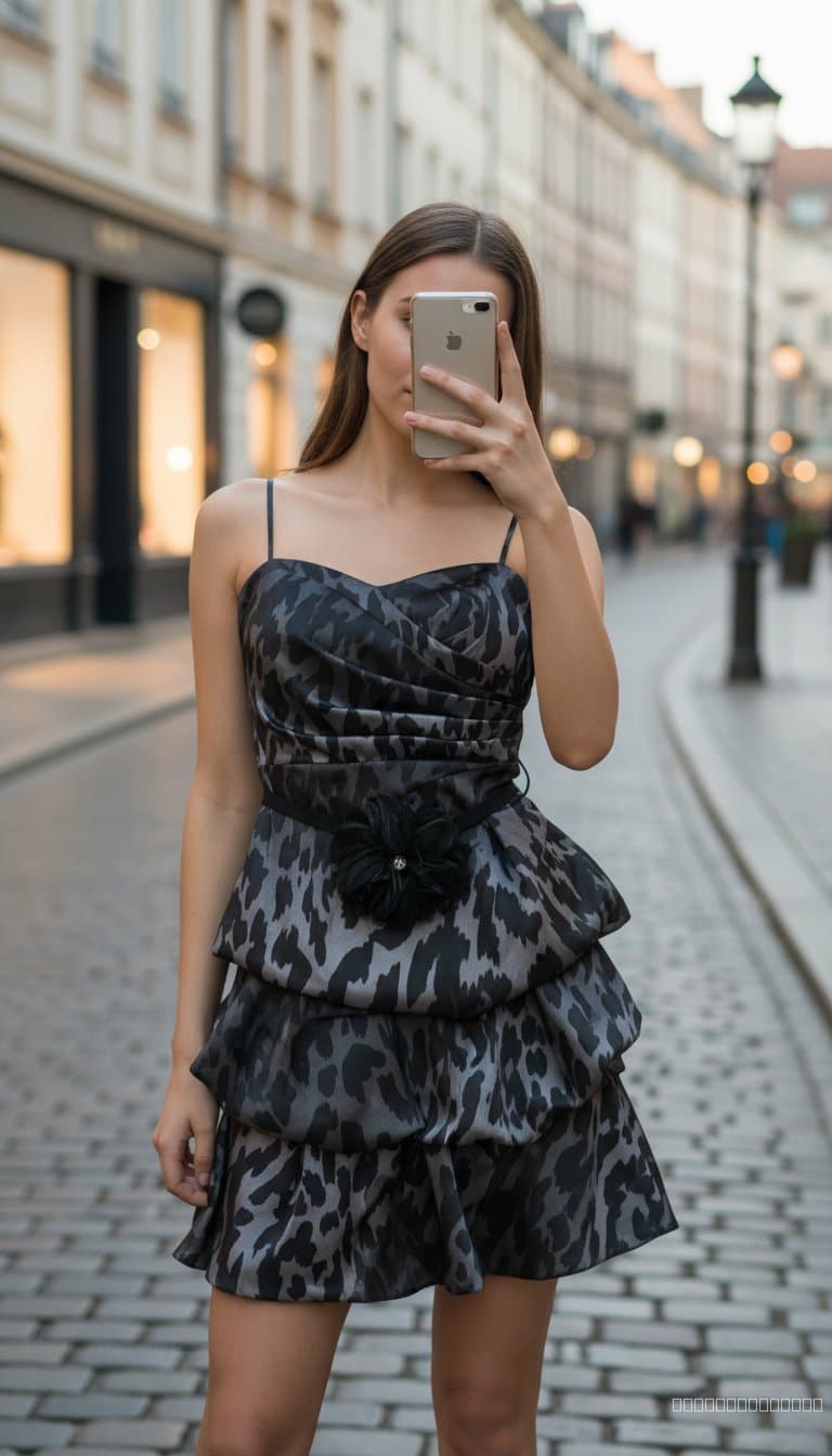 Curator's Note: This dress is the epitome of 'after-hours' chic. The mix of the moody animal print and the high-volume tiered skirt makes it a perfect choice for holiday parties, formal events, or a night out where you want to command attention. It has that classic 2000s glam aesthetic that is currently trending on the vintage circuit.