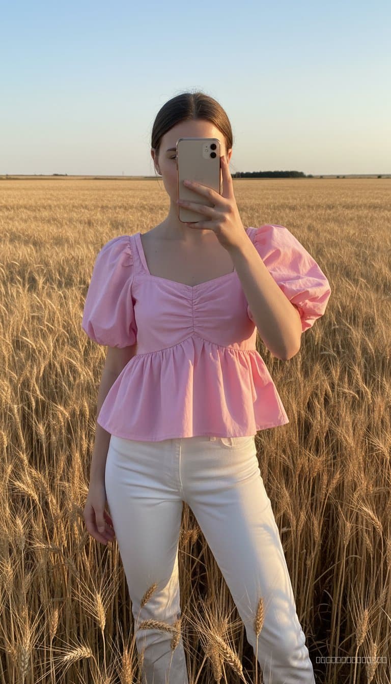 This top is the epitome of 'Sunday brunch chic.' I love the structure of the bodice contrasted with the airy, dramatic sleeves—it’s a simple piece that makes a massive impact. It’s lightweight, playful, and an absolute staple for the warmer seasons.