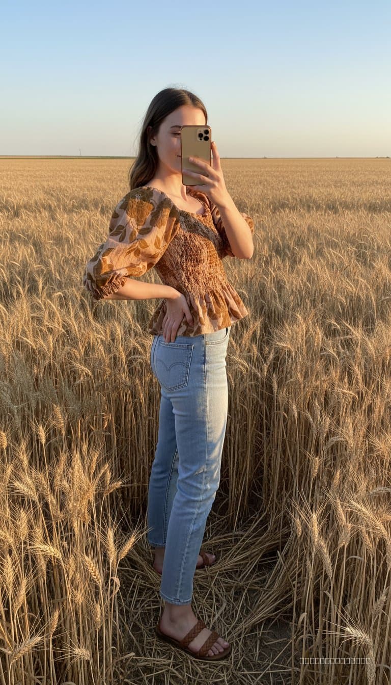 This piece captures the effortless 'prairie-chic' trend perfectly. The muted, earthy tones make it incredibly versatile—pair it with high-waisted denim for a casual daytime look or a midi skirt for an elevated, bohemian vibe. It's a foundational piece for anyone looking to build a soft, romantic capsule wardrobe.